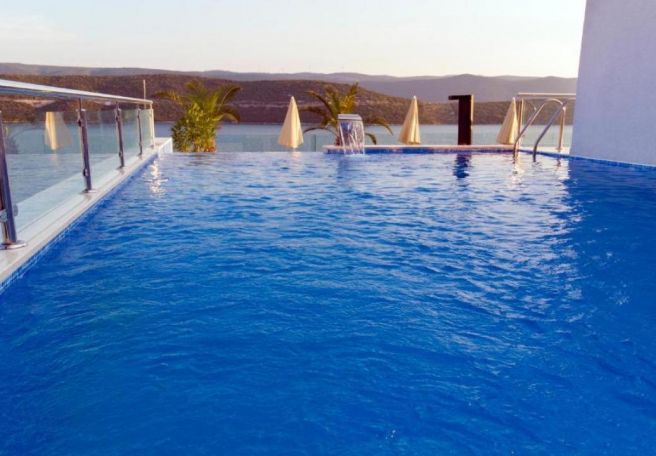 Басейн с морска вода, идеален за тези, които искат да се насладят на слънчевите дни в спокойна атмосфера.