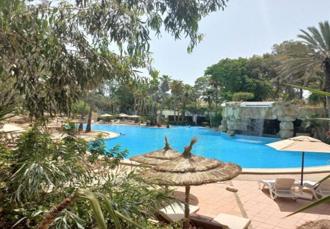 Tunisia Lodge 4* е част от комплекс с два съседни хотела и предлага спокойна атмосфера, обширна градина, открит басейн, достъп до плажа и подходящи удобства за семейна почивка. Работи по концепция