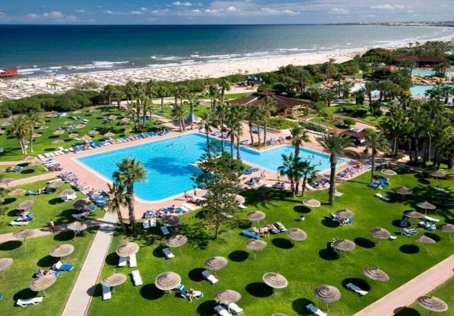 All Inclusive, няколко басейна, собствен аквапарк с водни пързалки, богата анимация, спортни терени и директен достъп до плажа. Хотелът е подходящ за семейства, особено с деца.