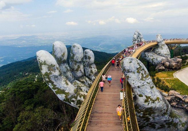 Възможност за допълнителна следобедна екскурзия *Изкачване с лифт до комплекса Ба На Хилс- „Ръцете на Бога”, дълъг 150 метра пешеходен златен мост, едно от най-интересните места, които можем да посетим в света.Градчето Ба На Хилс се намира на 1,5ч път от Хой Ан. Известно е с прекраснана си природа и с най-дългата лифтова дъга в света (над 5 км). Основното предназначение на моста е да свърже лифта с началото на горите, без да е необходимо изкачването на стъпала. Гледан отстрани, златният мост изглежда като златна нишка, която две гигантски каменни божествени ръце издърпват от земята.Най-впечатляваща е гледката, когато се образува мъгла в долината под моста. Тогава усещането е сякаш стъпвате в облаците, защото мостът се намира на 1000 метра надморска височина!