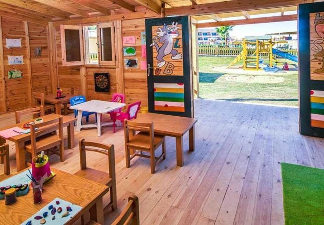 - За децата – миниклуб за деца от 4 до 12 години, детска площадка, детски кошари, удобно място за децата на плажа, допълнително бебешко легло, детско меню за вечеря, плитък воден бряг в залива;