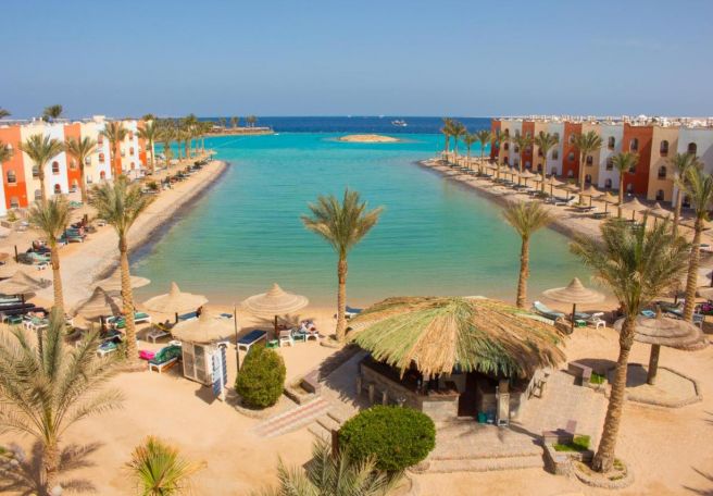 Намира се на 8 км. от летище Хургада, на 3 км. от центъра на Хургада, на брега на морето.