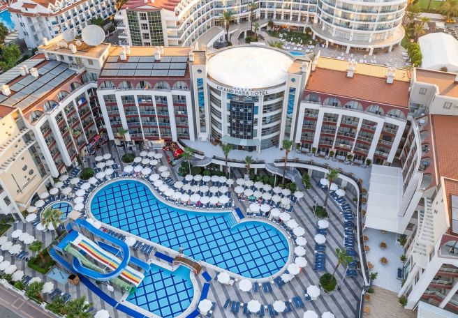 Основен ресторант, 3 бара, открит басейн, закрит басейн, детски басейн, водна пързалка, СПА център, детски клуб, аеробика, билярд, дискотека, анимация, магазини, конферентни зали. Безплатни услуги: сауна ,турска баня, фитнес, WI-FI интернет в лоби, тенис на маса. Платени услуги: билярд, интернет кафе, пералня, лекар, детегледачка ,Спа и Уелнес център Плаж: Градски плаж - Чадъри и шезлонги при басейна – безплатни, а на плажа – платени.