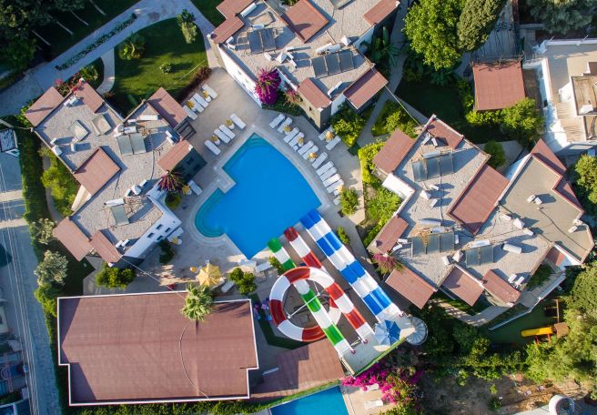 Хотелът е разположен на 45 км. от летище Милас, на 6 км от центъра на Бодрум, в района на Битез. Разположен на площ от 15 000 кв.м. Последна реновация през 2017 г.