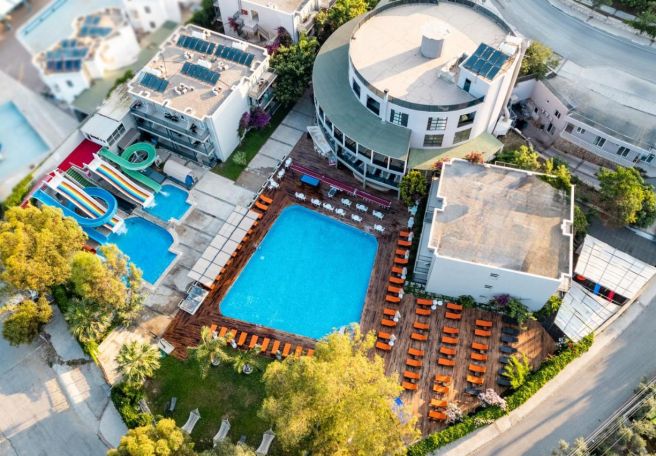 Хотелът се намира на 35 км от летището и на 1 км от центъра на Бодрум, в района на Гюмбет. Разположен върху площ от 18 000 м². Последно реновиран през 2024 г.