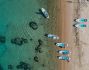 Собствен, пясъчен плаж със Син флаг и дължина от 200 м и платформа 500 m² - чадъри, шезлонги и матраци на плажа и при басейна – безплатно, плажни кърпи – срещу депозит. Частна платформа само за гости на вилите 80 m². И двете платформи са Adults Only. Кабани на плажа срещу допълнително заплащане.