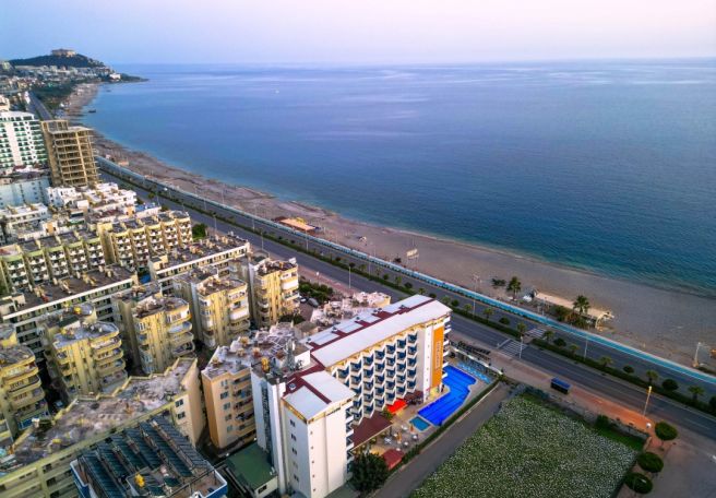 Намира се на 130 км от летище Анталия, на 140 км от центъра на Анталия, на 12 км от центъра на Алания, на 30 м от брега на морето. Построен 2002 г., на обща площ от 3 800 м2.