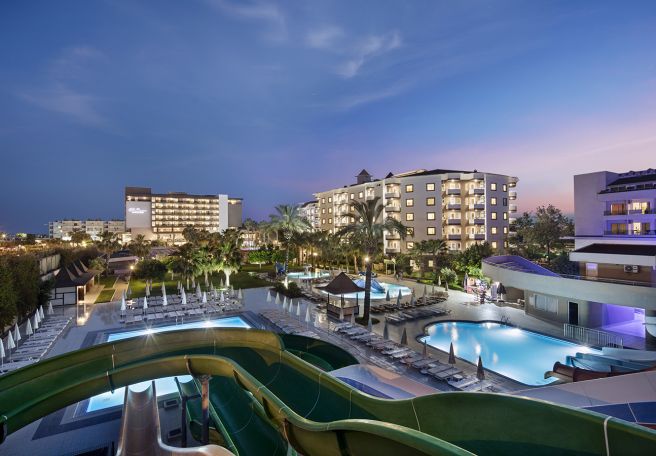 1 основен ресторант, бистро ( от 21ч до 7ч.), 4 а-ла-карт ресторант (италиански, kebab house, рибен и китайски - 1 безплатно посещение на един от ресторантите - с предварителна резервация), 5 бара и дискотека, сладкарница, 2 открити и 1 закрит басейн, 2 басейна с водни пързалки за възрастни, конферентна зала, СПА център.