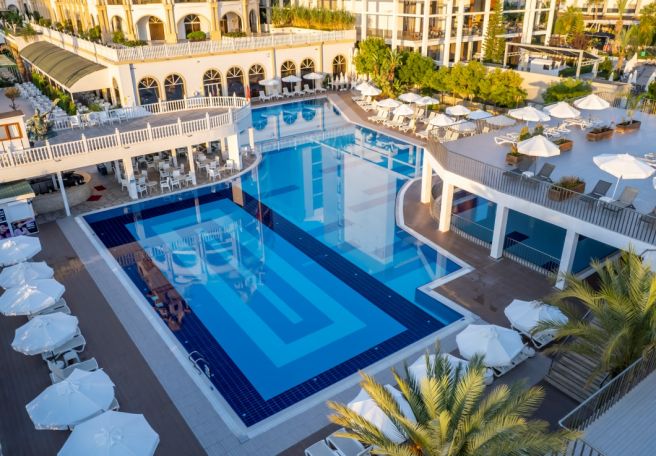 Основен ресторант, 4 а-ла-карт ресторанта (с предварителна резервация - италиански, далекоизточен и османски; мексикански - с доплащане), 7 бара, сладкарница, 2 открити басейна, закрит басейн, водни пързалки, магазини, СПА център, фитнес център, дискотека, паркинг, конферентни зали, WI-FI. За децата: детско меню, детски басейн, водни пързалки, детска площадка, мини клуб (4-7 г.), младежки клуб (8-12 г.), детско кино, мини диско, анимация. Безплатни услуги: сауна, турска баня, парна баня, фитнес, дартс, тенис на маса, плажен волейбол, мини голф, аеробика, водна аеробика, босиа, йога, мини библиотека, анимация, WI-FI. Платени услуги: масаж, фризьор, магазини, игрална зала, компютърни игри, билярд, химическо чистене, лекар, детегледачка, интернет кафе, уроци по сърф, водни спортове.