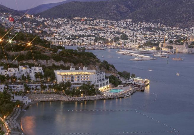 Хотелът се намира на 35 км от летището, 1 км от центъра на Бодрум, на брега на морето.