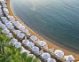 Собствен, пясъчно - чакълест. Чадъри, шезлонги и плажни кърпи на плажа и при басейна – безплатно.