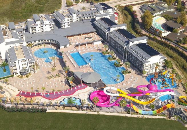Основен ресторант, 6 а-ла-карт ресторанта (рибен, турски, италиански –1 безплатно посещение на 1 от ресторантите при минимум 7 нощувки), 5 бара, 3 открити басейна(1 от които 18+) и 1 закрит басейн, аквапарк, СПА център, магазини, конферентни зала.